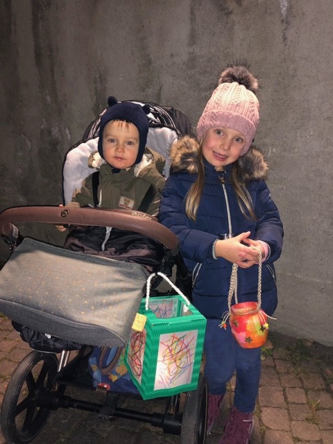 Auch unsere beiden Sonnenscheine Jana und Jonas waren beim Laternenumzug mit ihren selbstgebastelten Laternen dabei und haben fleißig mitgesungen: Ich geh mit meiner Laterne und meine Laterne mit mir…